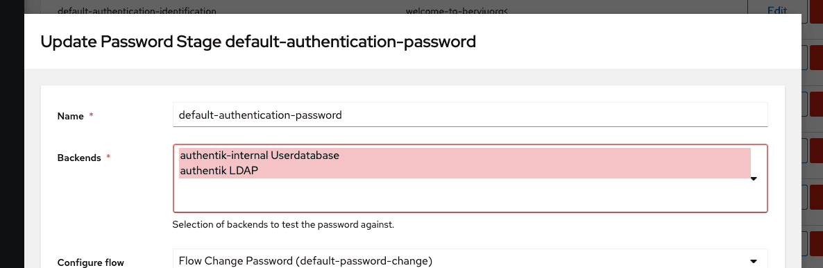 To finalise the Active Directory setup, you need to enable the backend "authentik LDAP" in the Password Stage.